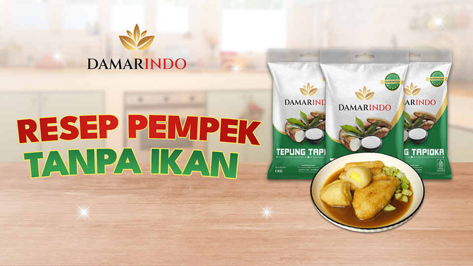 Resep Pempek Tanpa Ikan Berikut resep pempek tanpa ikan menggunakan tepung tapioka Damarindo : Bahan adonan pempek: 200 gr tepung tapioka Damarindo 100 gr tepung