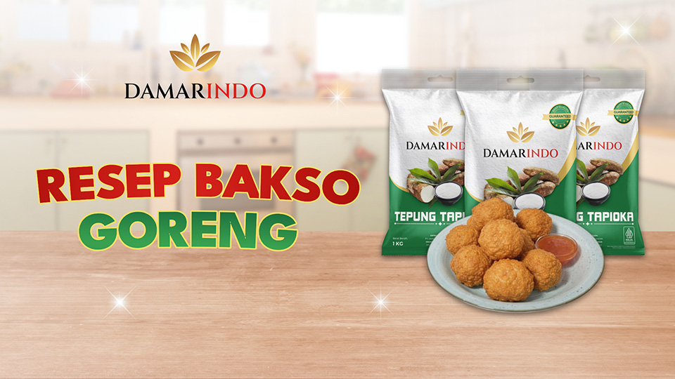 Resep Bakso Goreng Berikut resep bakso goreng menggunakan tepung tapioka Damarindo : Bahan adonan bakso goreng: 200 gr tepung tapioka Damarindo 150 gr tepung terigu