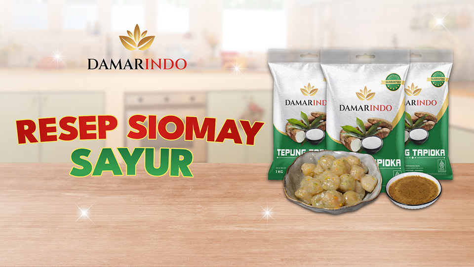 Resep Siomay Sayur Berikut resep siomay sayur menggunakan tepung tapioka Damarindo : Bahan adonan siomay: 200 gr tepung tapioka Damarindo 100 gr tepung terigu 2